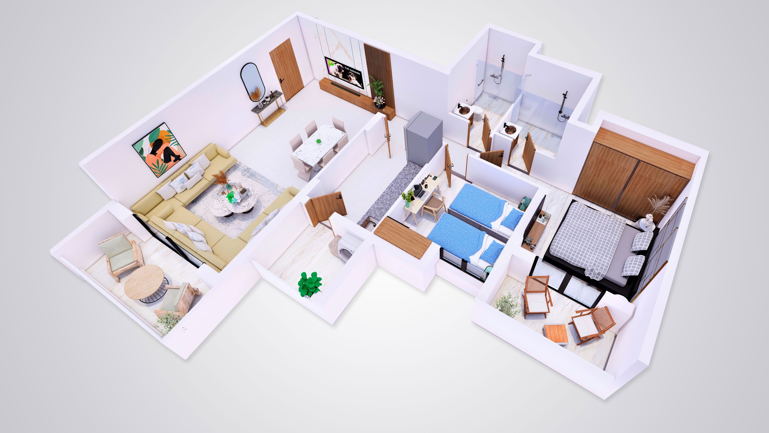 F3 : Salon, 2 chambres, cuisine, 2 SDB et terrasses