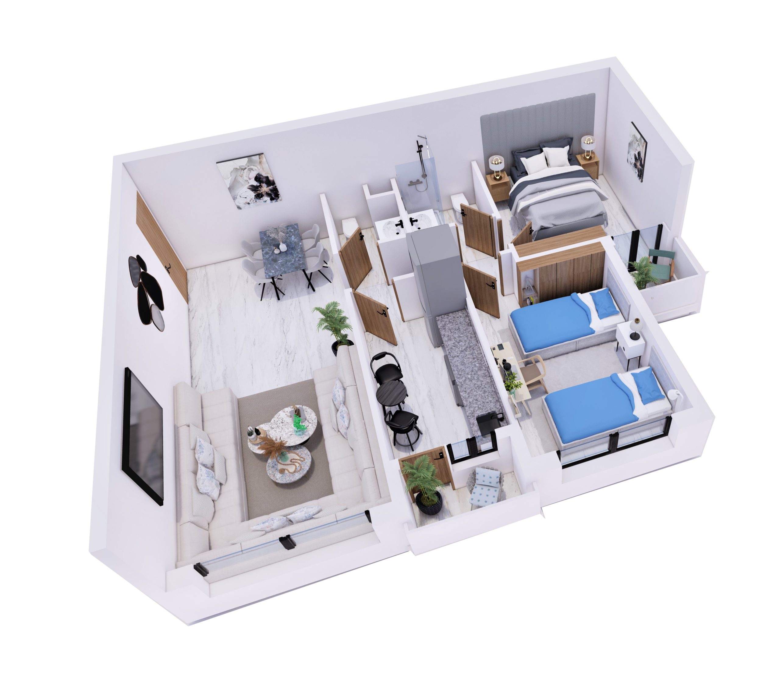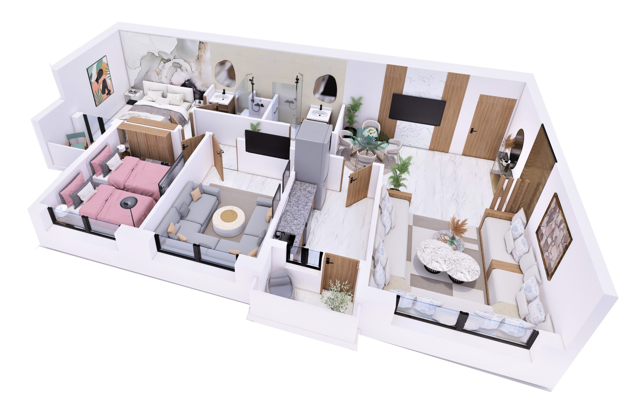 Appartements de superficies à partir de 68m² avec une cuisine équipée et une finition de qualité.